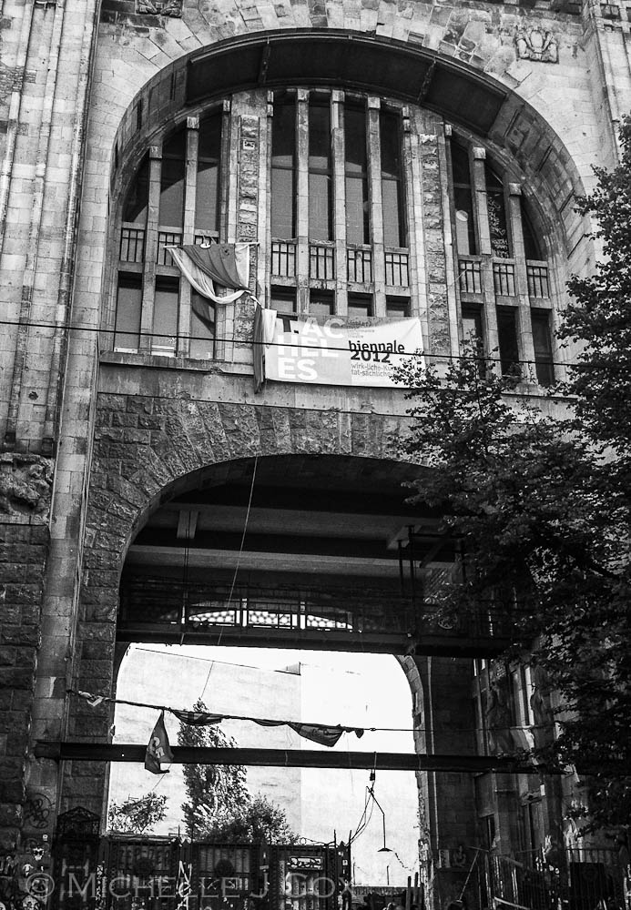 One of these is the huge Kunsthaus Tacheles on Oranienburgerstrasse. Originally built as a department store and although what remains looks derelict, it is now an enclave of artists. I remember crossing one evening to East Berlin in 1983 and spending some time in a makeshift bar in this building. When I enquired for the location of the toilet, the barman pointed me to a black painted door. On stepping through this I stumbled into a vacant lot from which bizarrely there was a Russian Mig jet planted tail first into the ground…apparently the efforts of some aspiring artists of the time. A 1000 pound Allied bomb had removed most of the rear of the building.