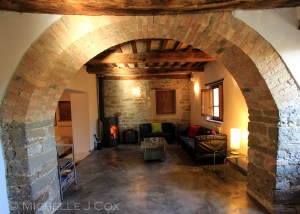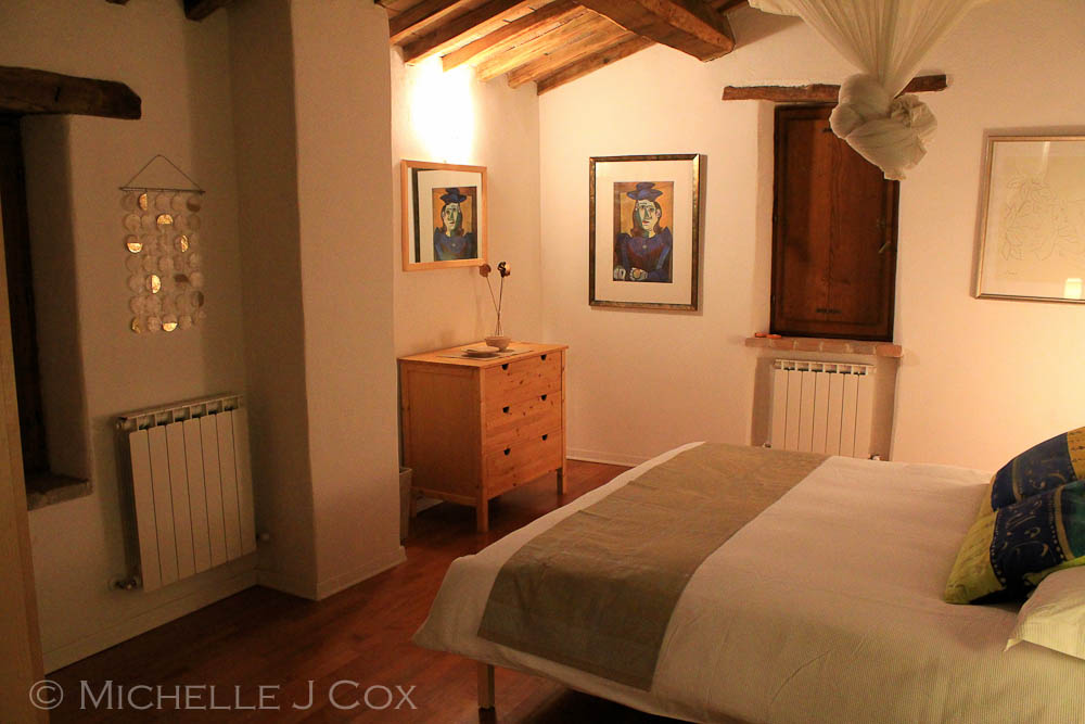 For those that know Jules – she has impeccable taste. And “Le Vaglie” looks like a traditional Umbrian farm house on approach, but is anything but once you set foot inside. The classic wooden double door entrance opens to reveal polished concrete floors, designer furniture & very cool artwork throughout. For those with an interest in improving your Italian cooking…this kitchen is where the magic happens! Jules is what I term a “serious cook”. Meaning she’s not officially trained in the field but it’s her passion & I’ve always said, if she entered one of those reality shows like Master Chef – she would blow them all away! AND, she catered for our wedding last year, so you get just how good a cook she is!
